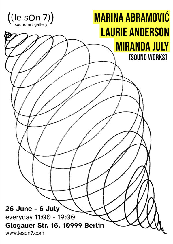We are very pleased to announce our new exhibition "Sound works" which will feature audio-only pieces by three artists renowned for their transformative contributions to contemporary art and performance: Marina Abramović, Laurie Anderson and Miranda July.