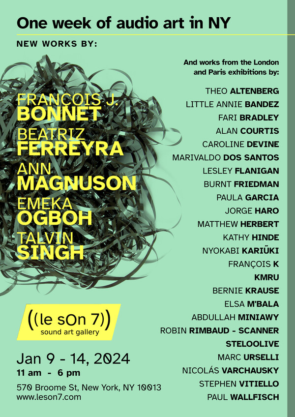 Le Son 7 is committed to exploring the possibilities of audio-only sound art, and we will continue to work with this format. We will be having another collective listening event in conjunction with the exhibition starting May 3rd in Madrid.