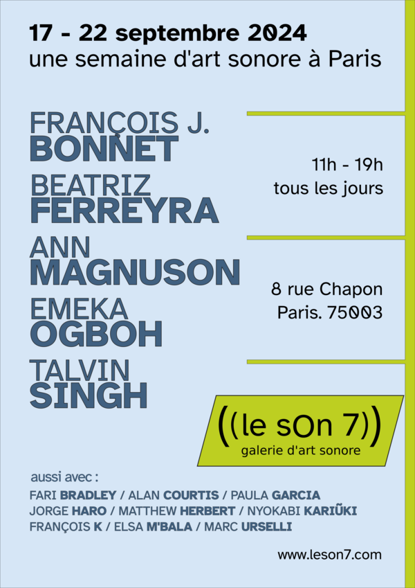 The new Le Son 7 exhibition will be from October 13th to 23th, in London. We are currently in conversation with the artists and will begin announcing them soon.