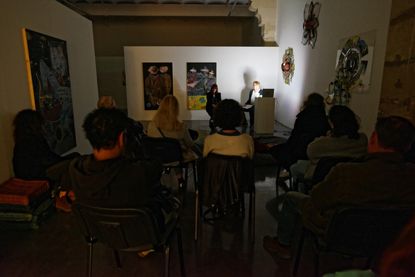 Las artistas Fari Bradley y Elsa M'bala estuvieron ayer en la exhibición liderando un evento especial. en el que compartieron sus experiencias y perspectivas sobre el arte sonoro con una visión general de los numerosos proyectos en los que participan actualmente. También presentaron las obras que han estado exponiendo con Le Son 7 ante una sala llena en una sesión de escucha colectiva.